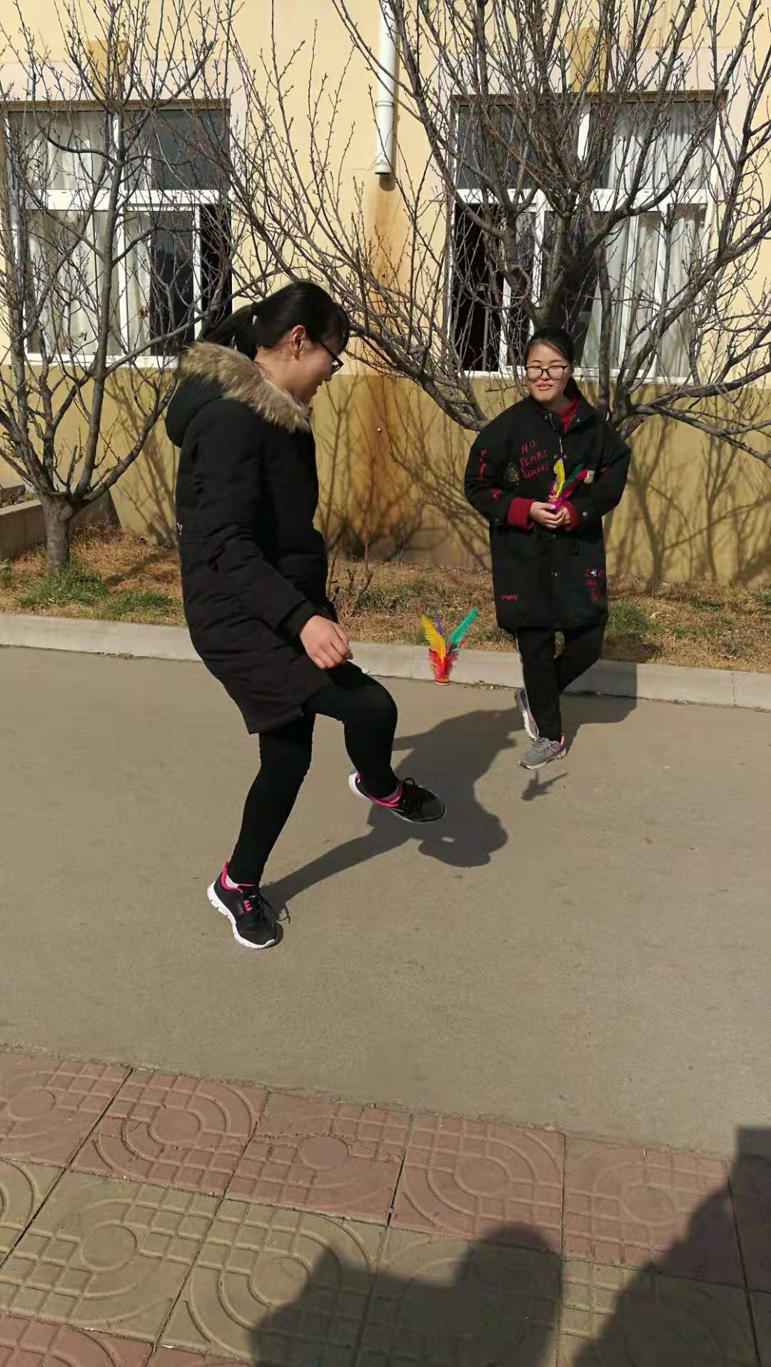 Qingdao's wind is really everywhere, but still can not stop the girls show the strength of shuttlecock kicking.