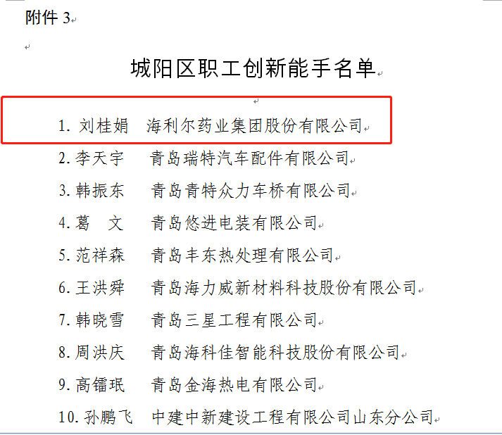 近日,青岛市城阳区总工会公布2023年城阳区劳模和工匠人才创新工作室、城阳区创新型班组、城阳区职工创新能手等名单,集团研发中心主任助理刘桂娟获评“2023年度城阳区职工创新能手”称号。