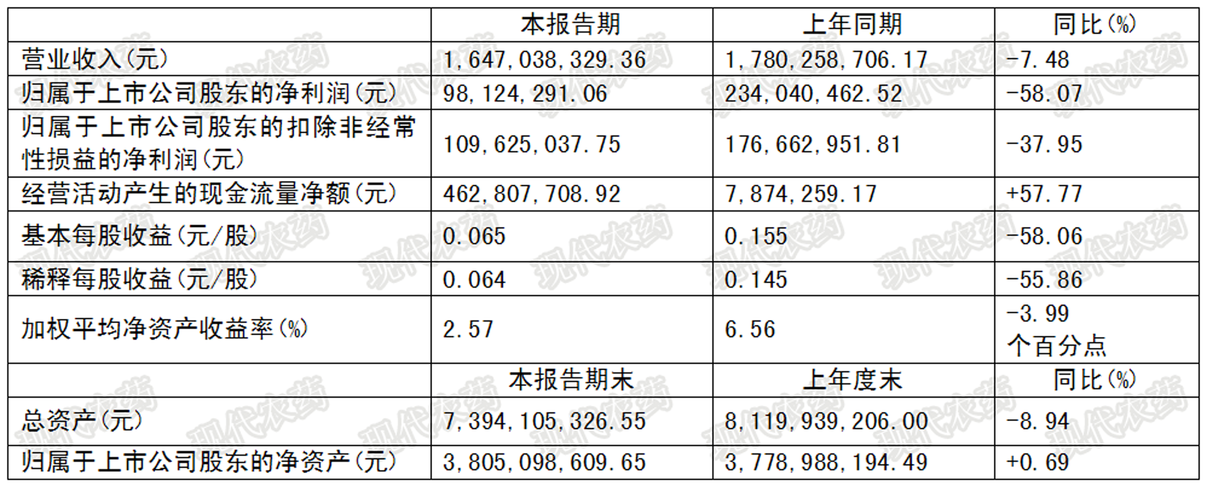 报告期内,公司围绕农化+生物农业+仓储物流多板块的发展战略,紧紧围绕年初制订的目标任务,积极开展有关工作。上半年实现营业收入164,703.83万元,同比下降7.48%,实现归属于上市公司股东的净利润9,812.43万元,同比下降58.07%。