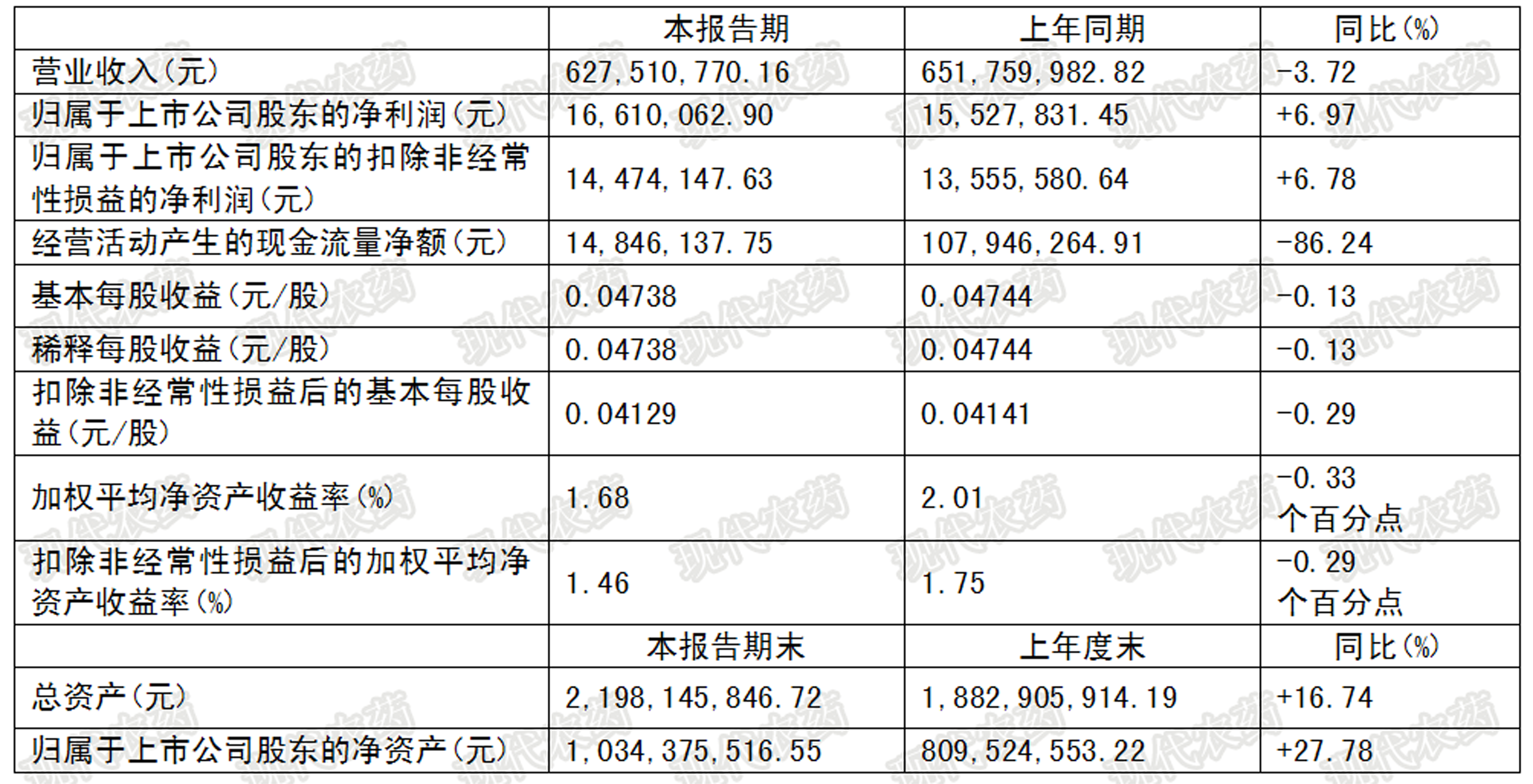 表1 辉丰股份上半年主要财务数据