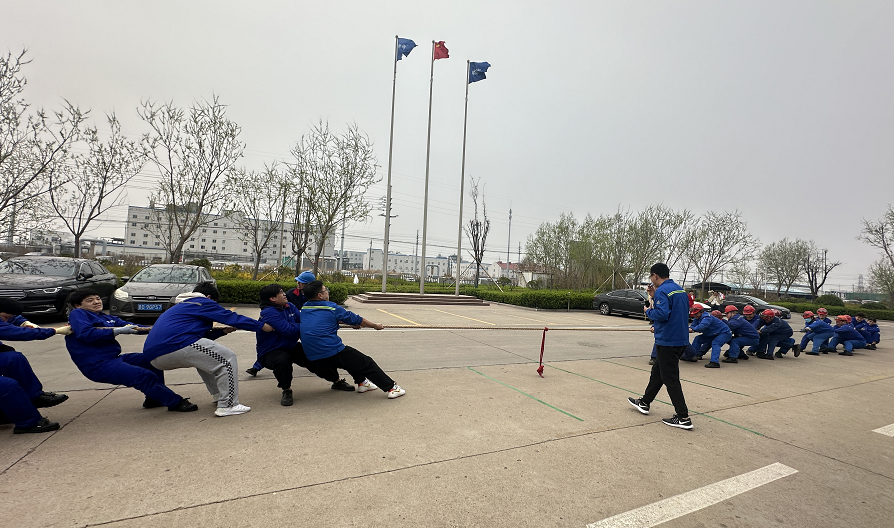 比赛在山东海利尔工厂人力行政处处长杨子江的一声哨响后开启了激烈的角逐,大家齐力后仰,拼命的拉着绳子。