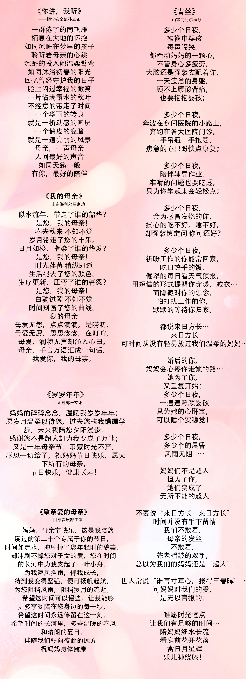 经三天投票评选,现对参与活动的部分优秀作品进行展示,一起来感受对妈妈们的爱与祝福!