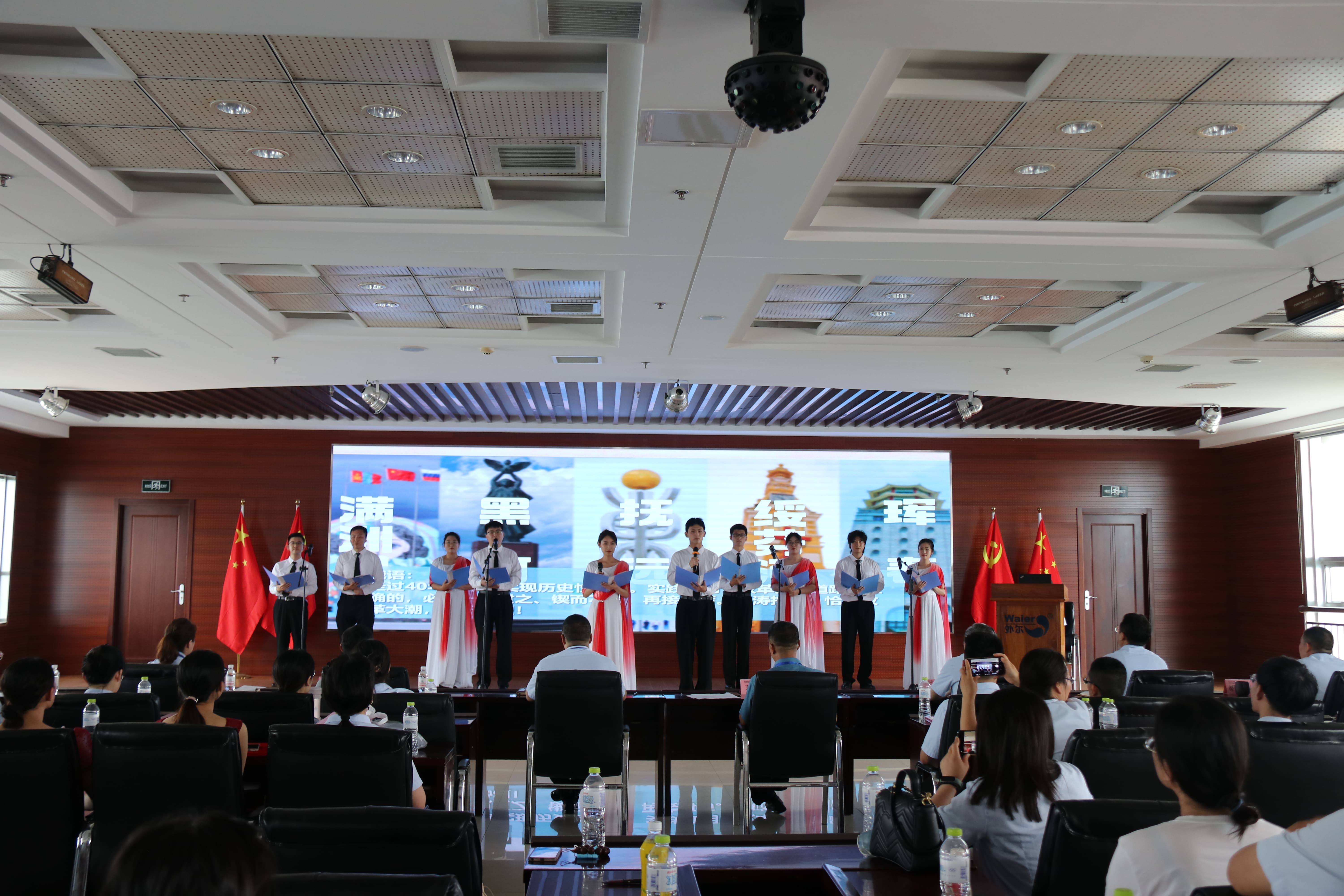 重温红色经典,走进光荣岁月。在中国共产党成立101周年之际,为迎接党的二十大胜利召开,进一步增强“爱党爱国爱企业”的使命感和责任感,进一步增强企业的凝聚力和向心力,集团在“七一”当天举办以“永远跟党走,奋进新征程”为主题的诗歌朗诵比赛活动。来自各工厂、子公司的8支代表队近200人来到集团总部8楼会议室,济济一堂、红心向党。