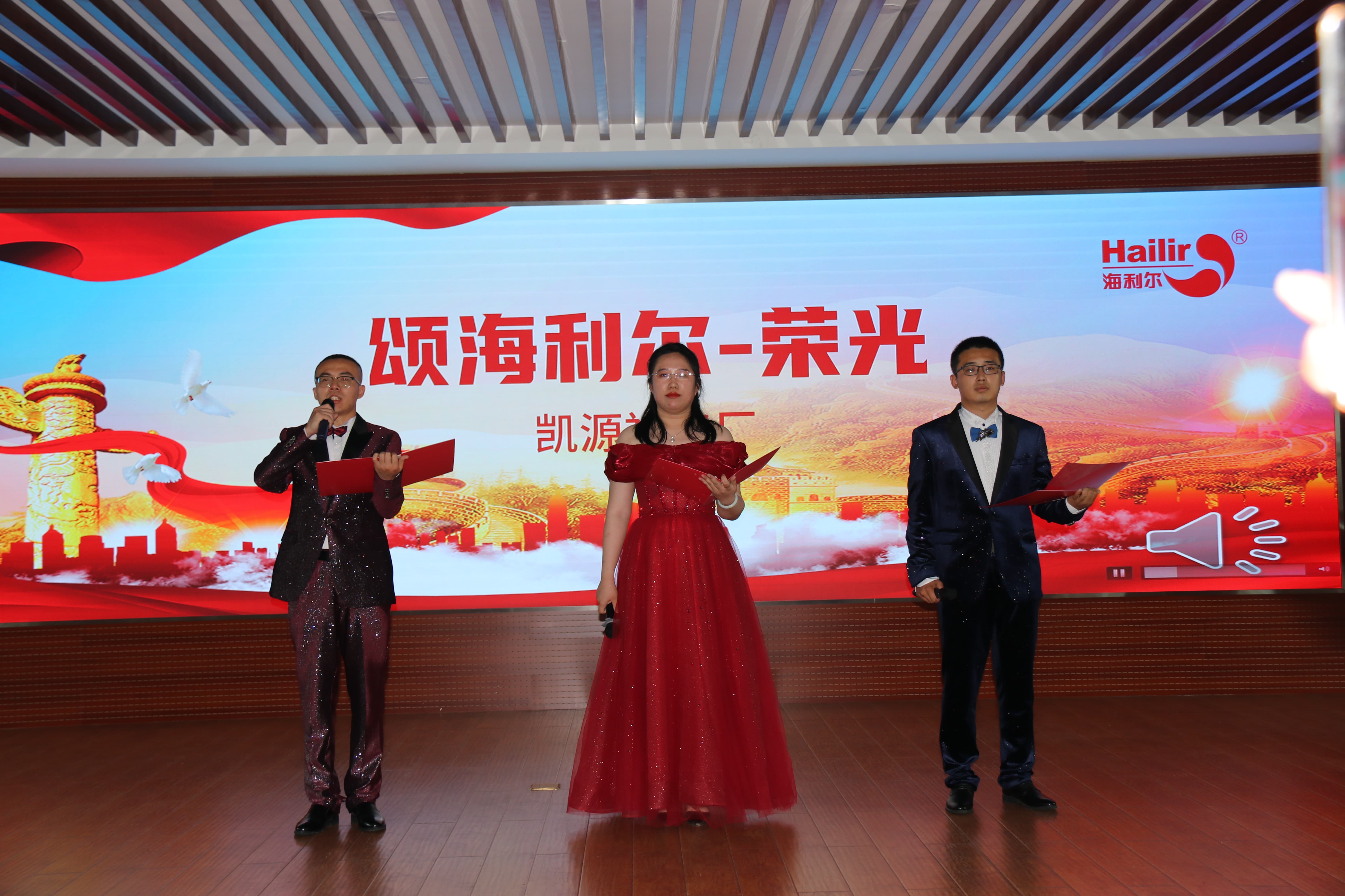 集团董事长葛尧伦、集团总裁葛家成、集团总工程师兼研发中心主任王良清、集团制剂生产总监杨勇、集团人力资源总监姜延红、集团行政管理总监谭长雁等领导出席活动并担任评委。8个参赛单位(按出场顺序)——山东海利尔工厂、国际业务中心、奥迪斯工厂、恒宁生物、青岛海利尔工厂、滕润翔、凯源祥工厂、研发中心一一登场,贡献了一场场别开生面的朗诵表演。台上朗读者声情并茂,初心激荡;台下观众席掌声阵阵,同心飞扬。一场充满激情与创意、对党、对祖国、对海利尔爱的表白深情演绎。