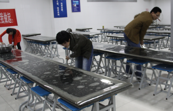大家穿着统一的蓝色马甲,一下子意识到了自己的身上的责任和使命。我们这次活动的主要任务是清理餐厅和家属楼一单元。大家明确分工,领着工具便风风火火开展起来。让我们一起来看看志愿者的风采吧: