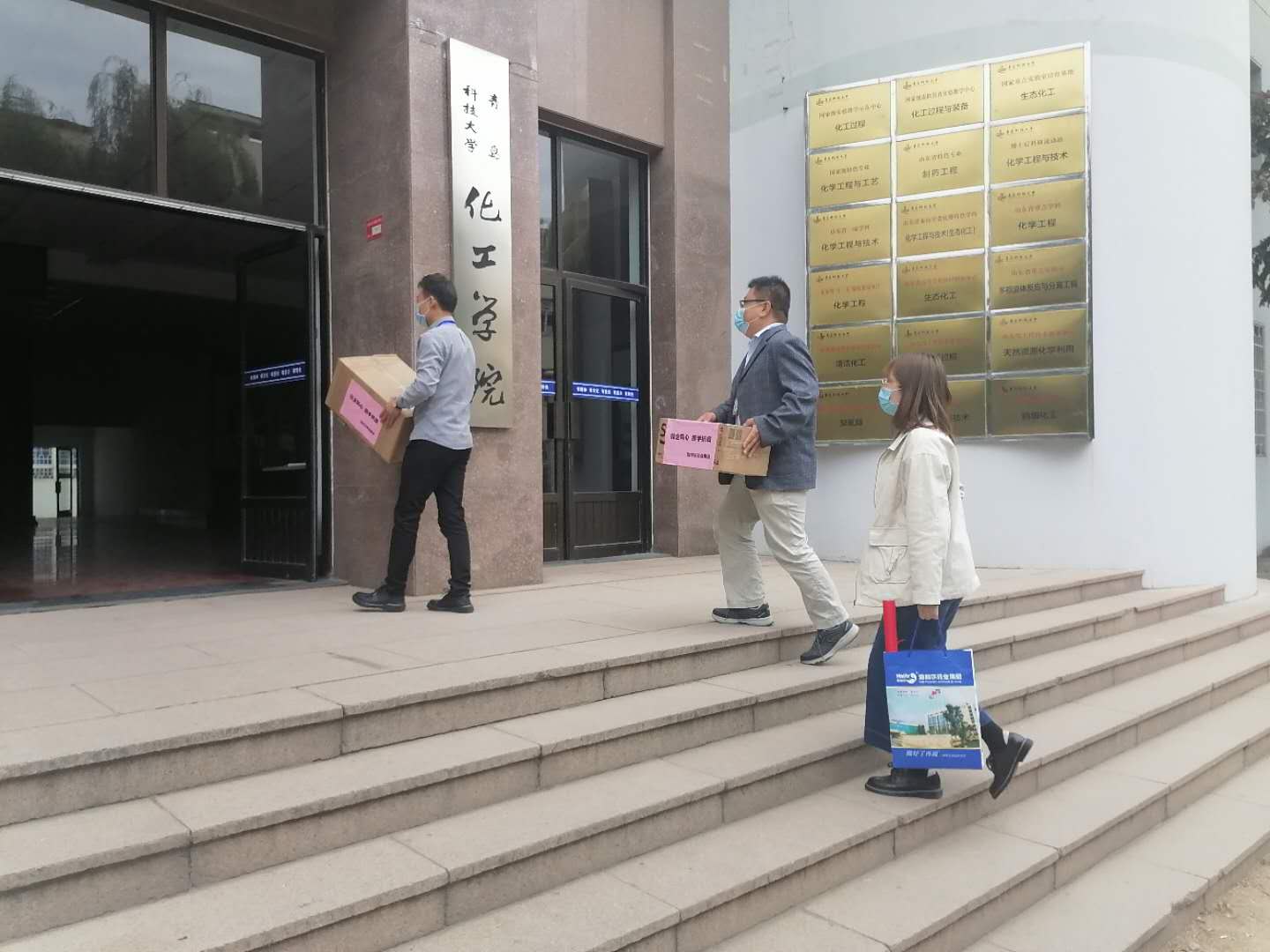 下午3时,志愿者走进化工学院,受到学院王广建教授、周欣然主席的热情接待。接收到抗疫物资后,学院李院长对海利尔的慈行善举大为赞赏,双方在“校企同心 携手抗疫”横幅前合影留念。李院长表示,海利尔是青科大的好朋友、好伙伴,多年来一直保持合作,希望这种友谊长久保持下去,并责成学院耿老师、柳老师为海利尔各项活动选好人、服好务。