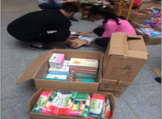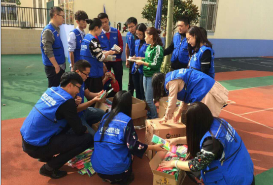 互动游戏结束后,志愿者们给孩子们分发礼物: