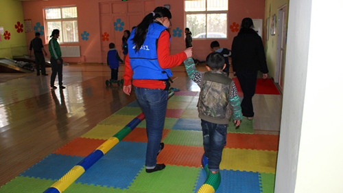 从穿上海利尔义工服的那一刻起,我们就觉得自己身上带着一份很重的责任,用心与小朋友交流,用关爱去感化他们。进入康复训练大厅,就能感受到这群孩子的“不一样”,每个孩子都是个人玩个人的,没有沟通和交流,也没有孩子在意我们的到来。看到这个场景,我们都感到很心疼。我们渐渐地融入他们,整个下午我们一直在努力与他们玩游戏,帮助他们做康复训练。我们每个人都很耐心的跟他们玩在一起。他们对我们笑了,我们就很开心,他们跟我们讲话了,我们就很满足。