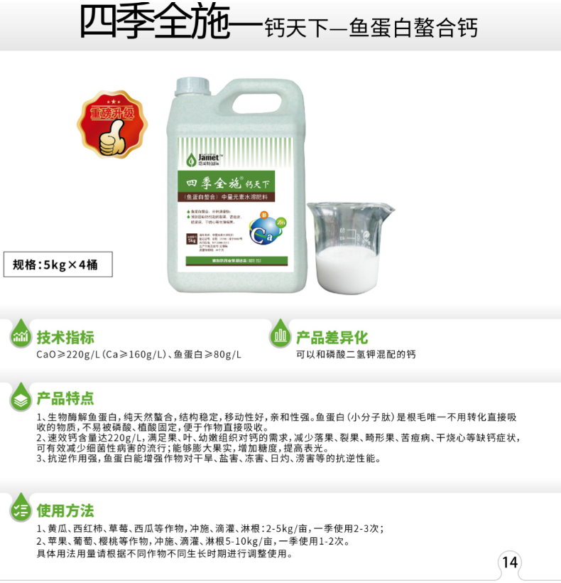 产品名称 四季全施—钙天下-鱼蛋白螯合钙